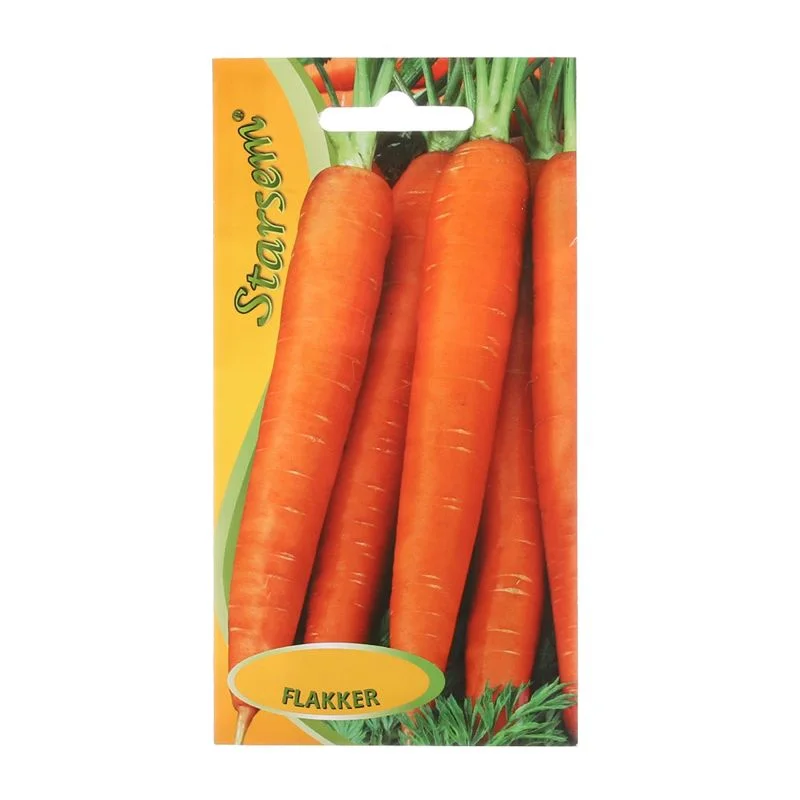 Semintele de morcov Flakker Starsem ofera un soi tardiv, cu perioada de vegetatie de 200-220 zile. Radacinile sunt mari, conice, de aproximativ 23 cm lungime si 5 cm diametru.